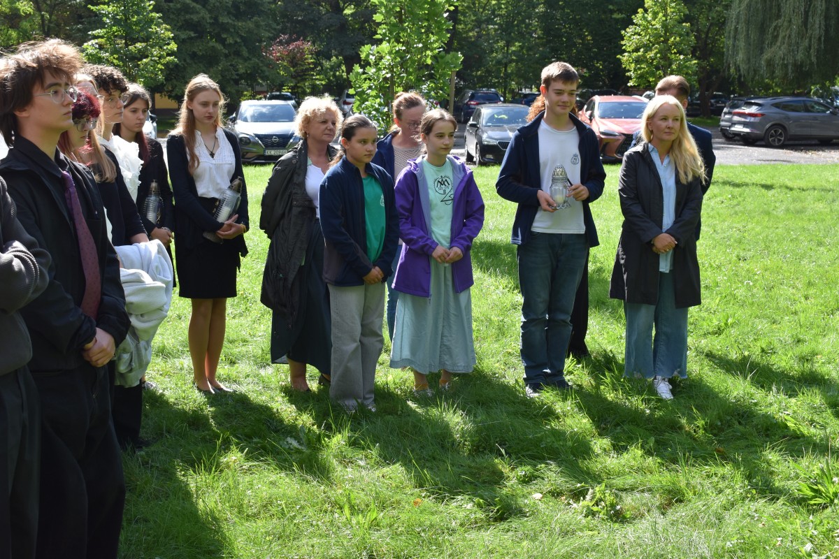 Mieliśmy wyjątkową okazję zapoznać się życiorysami ofiar zbrodni, związanymi z nami poprzez Dęby Pamięci zasadzone w parku przyszkolnym. Na koniec ceremonii pomodliliśmy się w intencji zabitych i zapaliliśmy przy pomniku znicze w ramach programu Niezniszczalny Wieniec. Były to obchody przepełnione melancholię i zadumą; wszystkim nasunęła się jedna myśl: Nigdy więcej wojny.