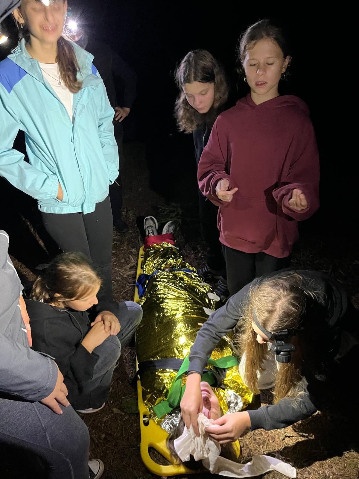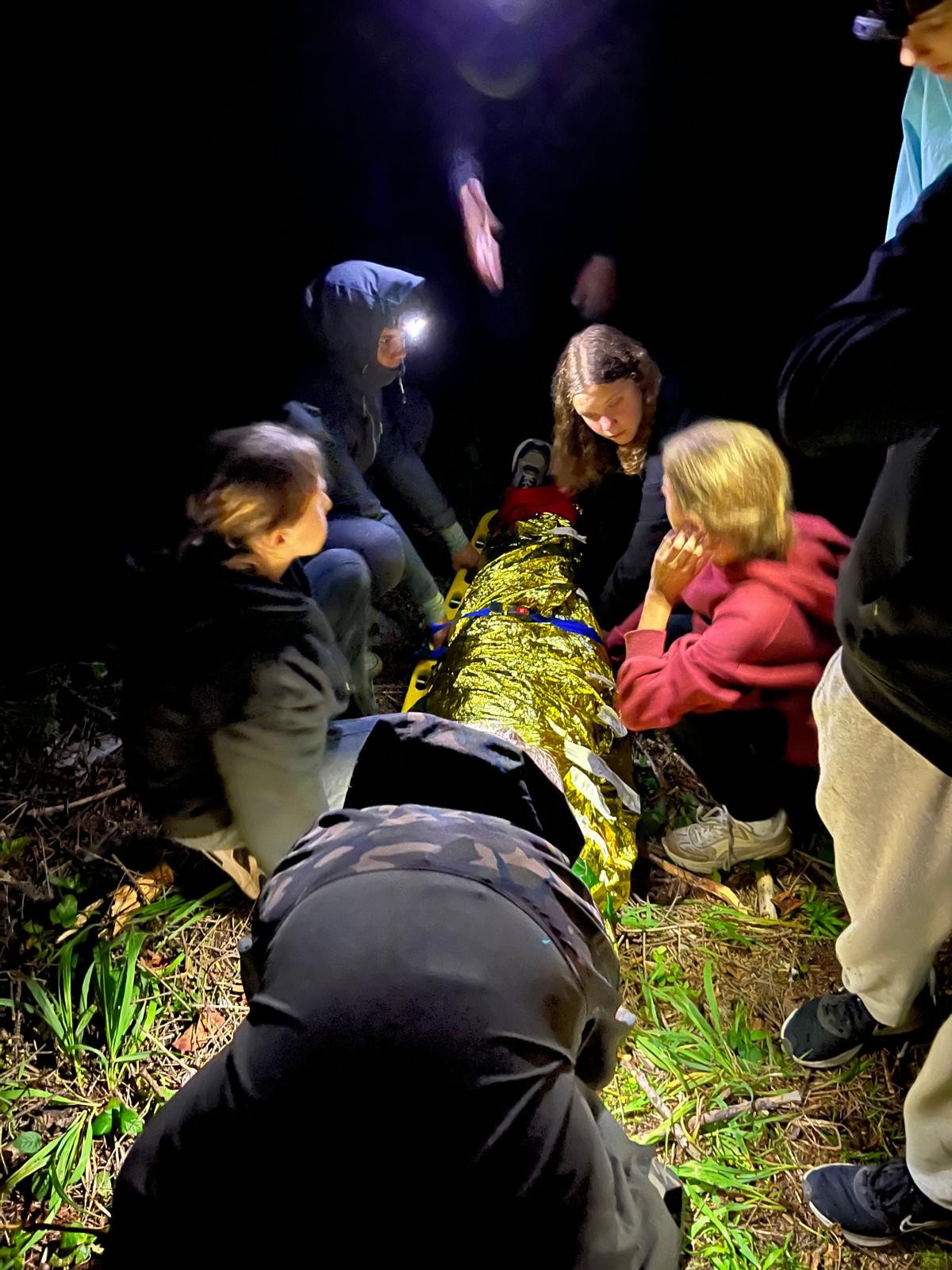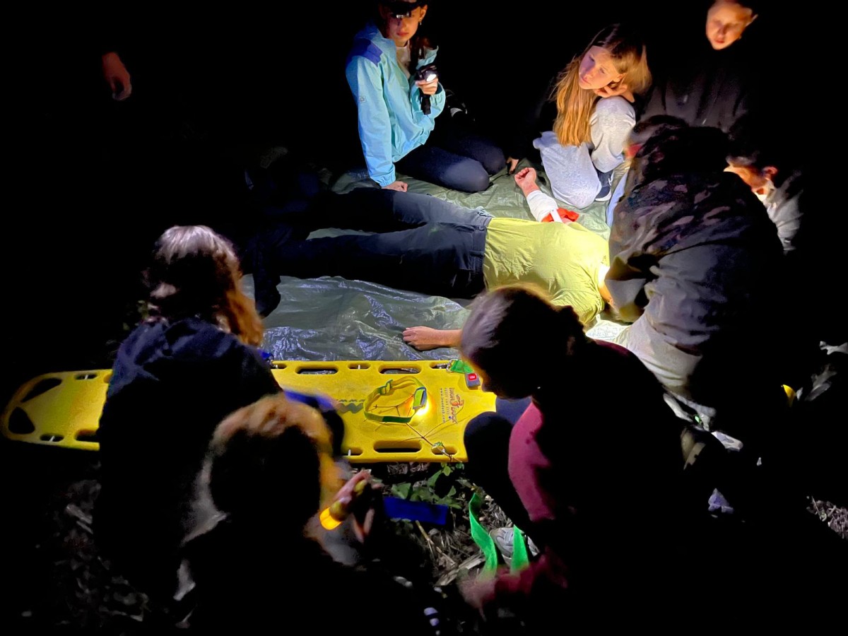 Ostatecznym sprawdzianem były nocne pozoracje w lesie. Dwie drużyny, wyposażone w sprzęt ratowniczy, wyruszyły w górzysty teren po zmroku, szukając poszkodowanych. Akcja w ograniczonym świetle, przy wymagającym terenie nie należała do najprostszych - nasi pozoranci nie ułatwiali zadania. Podczas ćwiczeń nie było czasu na zastanawianie się „czy dam radę?” - trzeba było działać, szybko reagować i ratować życie. Urazy, splątanie, brak współpracy poszkodowanego, nagłe pogorszenie stanu, hipotermia, ewakuacja - to tylko część wyzwań, z którymi zmierzyli się młodzi ratownicy. Skuteczność akcji zależała nie tylko od wiedzy, ale również od współpracy całego zespołu.