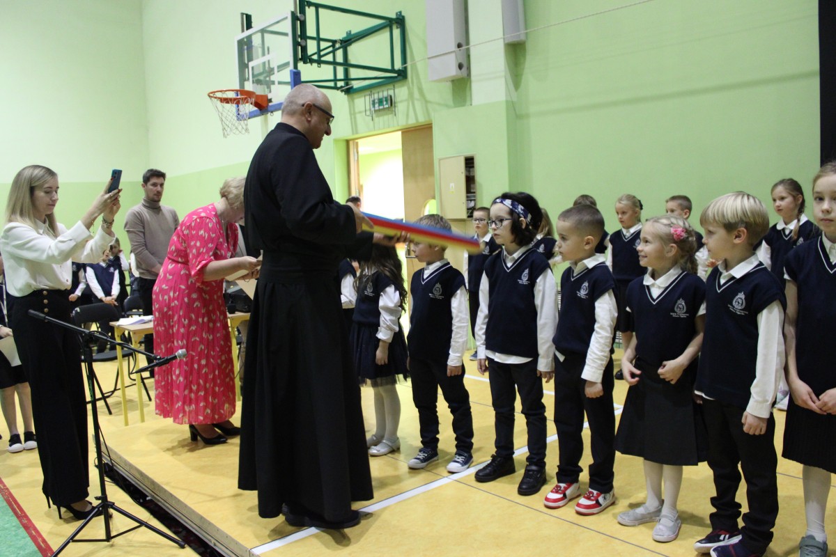 Mali uczniowie zaprezentowali piękny program, który spotkał się z entuzjastycznym przyjęciem całej społeczności szkolnej. Najważniejszym momentem było uroczyste pasowanie pierwszaków na uczniów, które symbolicznie wprowadziło ich w szkolną społeczność. Po zakończeniu części oficjalnej młodsze dzieci wróciły do swoich klas, natomiast uczniowie starszych klas wzięli udział w różnorodnych aktywnościach poświęconych postaci patrona szkoły. Odbyły się gry, zabawy, quizy i inne działania, które nie tylko bawiły, ale też przybliżały sylwetkę Stanisława Konarskiego i jego zasługi dla polskiej oświaty.