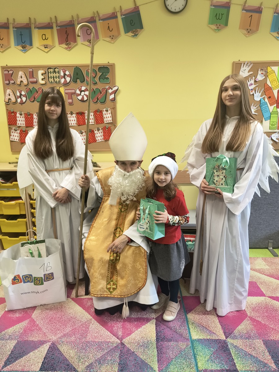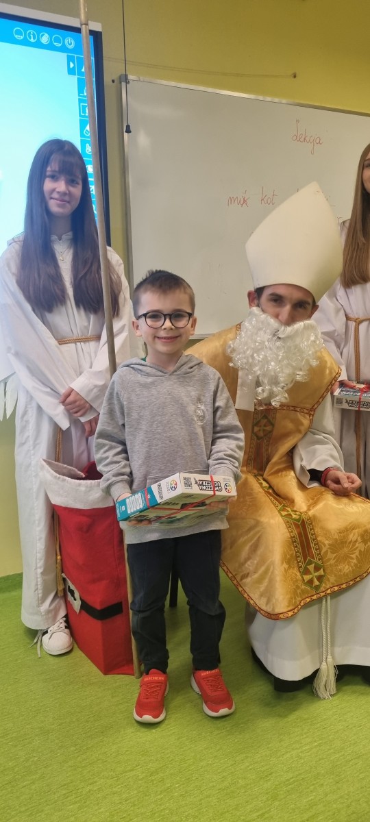Gdy Mikołaj wszedł do klas, zrobiło się naprawdę wesoło i magicznie. Każde dziecko otrzymało piękny prezent, który wywołał na twarzach uczniów szerokie uśmiechy. Nikt nie dostał rózgi – wszyscy okazali się wyjątkowo grzeczni w tym roku. Wizyta Mikołaja sprawiła wszystkim wiele radości :)