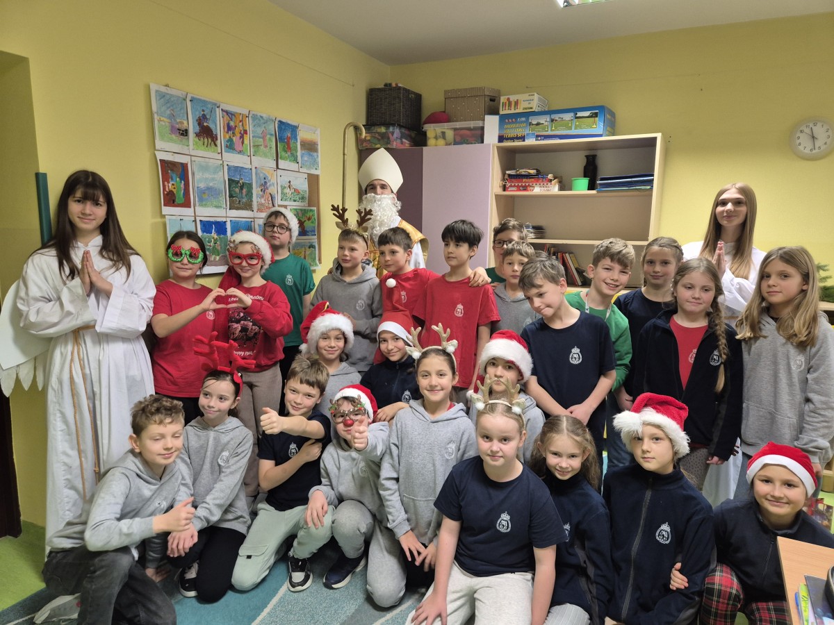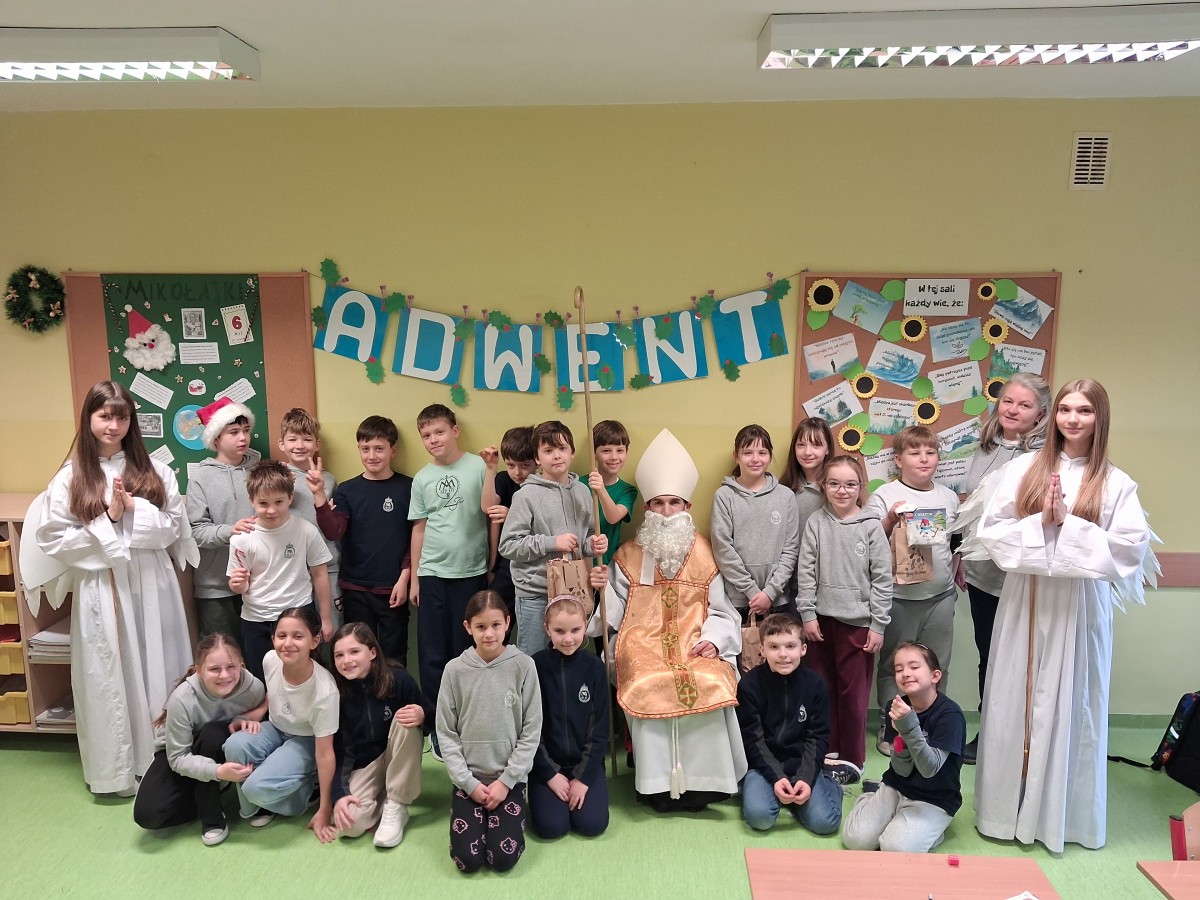 W poniedziałek naszą szkołę odwiedził długo wyczekiwany gość- Mikołaj. Już od rana wśród uczniów panowało ogromne poruszenie, a szczególnie najmłodsi z niecierpliwością wypatrywali jego nadejście.