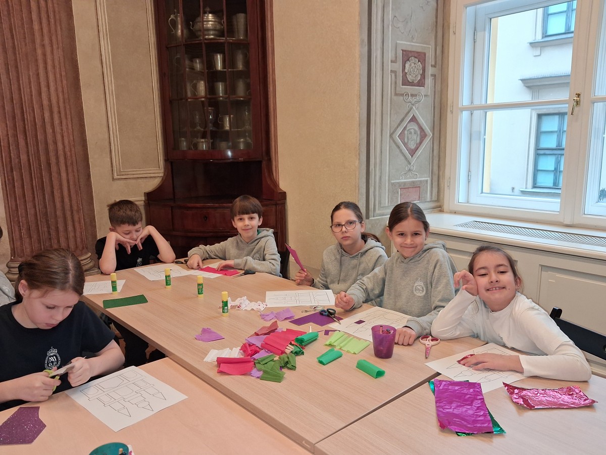 Przewodnik opowiedział im o tradycji tworzenia szopek, która w Krakowie sięga XIX wieku. Uczniowie dowiedzieli się, że dawniej szopki wykonywali rzemieślnicy i murarze zimą, kiedy brakowało pracy, oraz że każda z nich musi przedstawiać charakterystyczne elementy krakowskiej architektury, takie jak wieże Kościoła Mariackiego. Podczas zwiedzania dzieci mogły z bliska obejrzeć zarówno niewielkie, delikatne szopki, jak i imponujące konstrukcje z ruchomymi figurkami. Z zainteresowaniem słuchały opowieści o materiałach, z których powstają te niezwykłe dzieła – kolorowej folii, tekturze, drewnie czy nawet szkle – oraz o pracy twórców, którzy nierzadko poświęcają wiele miesięcy, by ich szopka była gotowa na konkurs. Wycieczka okazała się nie tylko okazją do poznania krakowskiej tradycji, ale także inspiracją do własnych świątecznych działań plastycznych.