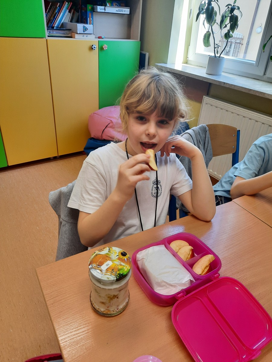 Podczas pracy uczniowie doskonalili umiejętność bezpiecznego posługiwania się akcesoriami kuchennymi oraz dbali o estetykę podania. Warsztaty zakończyły się wspólną degustacją.