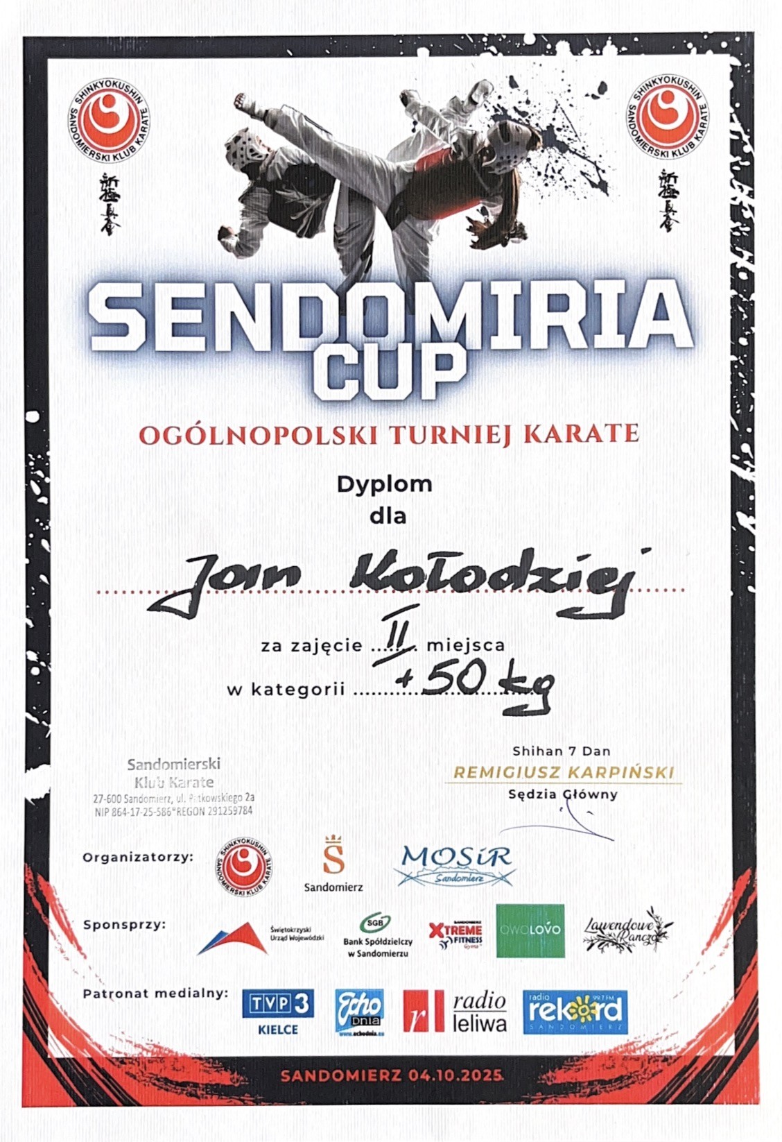 W sobotę 4 października Janek startował w Ogólnopolskim Turnieju Karate Sendomiria Cup w Sandomierzu i wywalczył srebrny medal w kategorii +50 kg.