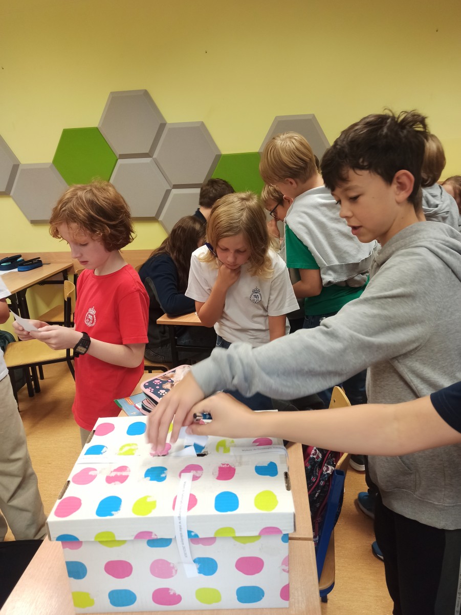 W dniach 01.10 oraz 08.10 odbyły się wybory do Samorządu Uczniowskiego: pierwsza i druga tura. Do drugiej tury przeszło trzech kandydatów z największą ilością głosów czyli Mikołaj Ślęzak, Maria Węgrzyn i Łucja Salwińska. Przewodnicząca szkoły w drugiej turze została Łucja Salwińska.