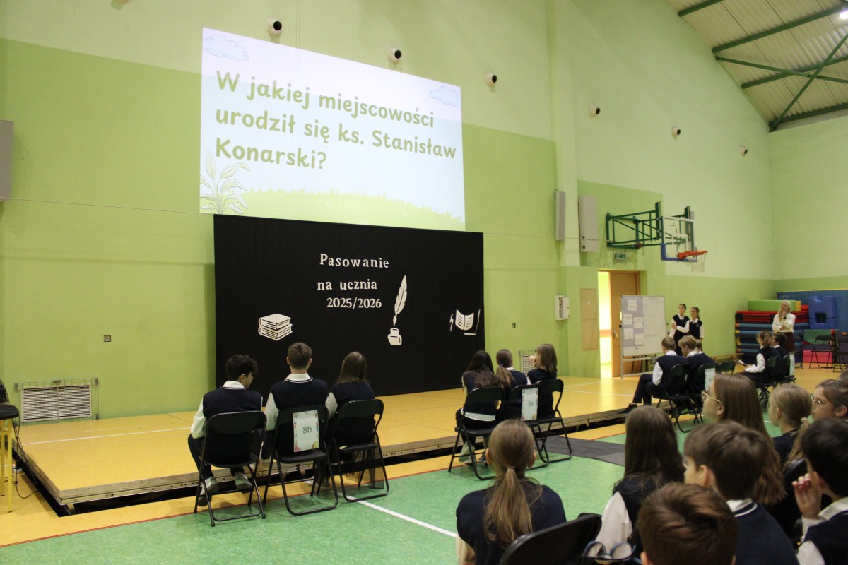 Mali uczniowie zaprezentowali piękny program, który spotkał się z entuzjastycznym przyjęciem całej społeczności szkolnej. Najważniejszym momentem było uroczyste pasowanie pierwszaków na uczniów, które symbolicznie wprowadziło ich w szkolną społeczność. Po zakończeniu części oficjalnej młodsze dzieci wróciły do swoich klas, natomiast uczniowie starszych klas wzięli udział w różnorodnych aktywnościach poświęconych postaci patrona szkoły. Odbyły się gry, zabawy, quizy i inne działania, które nie tylko bawiły, ale też przybliżały sylwetkę Stanisława Konarskiego i jego zasługi dla polskiej oświaty.