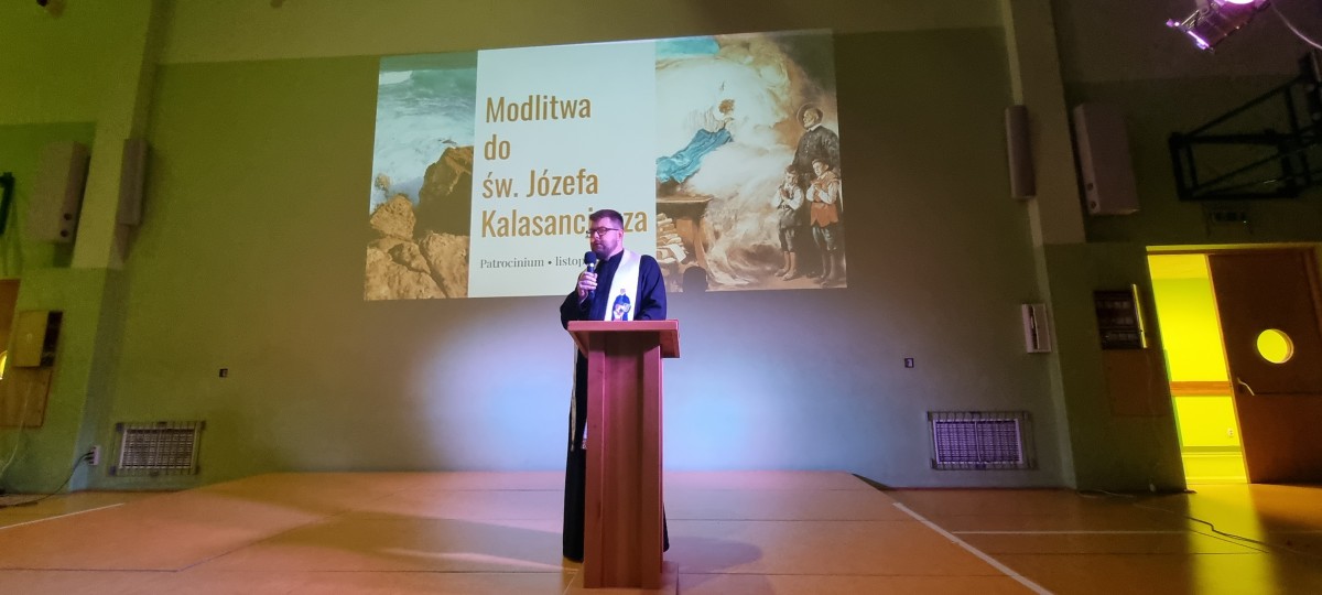 Potem reprezentanci klas IV-VIII wzięli udział w grze pod tytułem „Zegar Kalasancjusza”, przygotowanej przez uczennicę 8B – Anastazję Róg. Uczestnicy musieli przejść cztery wymagające etapy. W tym samym czasie w sali gimnastycznej trwał teleturniej „Jaka to melodia?”. Podczas krótkiej przerwy uczniowie mogli częstować się ciasteczkami, bawić się przy tańcach pijarskich, a także kupować własnoręcznie wykonane przedmioty na stoisku charytatywnym. Kolejnym punktem programu były wywiady z zaproszonymi gośćmi (perkusistą, piłkarką, trenerem, chirurgiem onkologiem, pilotem, łyżwiarką, tancerką oraz hodowcą roślin owadożernych). Rozmowy dotyczyły rozwijania własnych pasji i zainteresowań. Uroczystość zwieńczyła prezentacja obrazu, wspólnie namalowanego przez uczniów klas I–VIII, ukazującego św. Józefa Kalasancjusza w otoczeniu dzieci. Na koniec ogłoszono wyniki gry „Zegar Kalasancjusza” oraz konkursu fotograficznego „Z książką Ci do twarzy”.