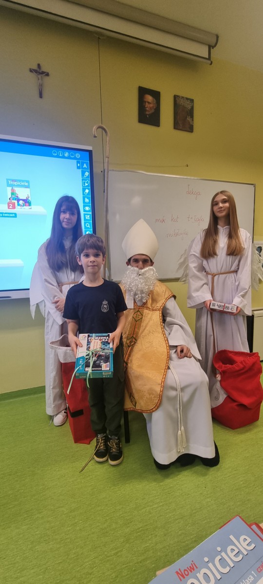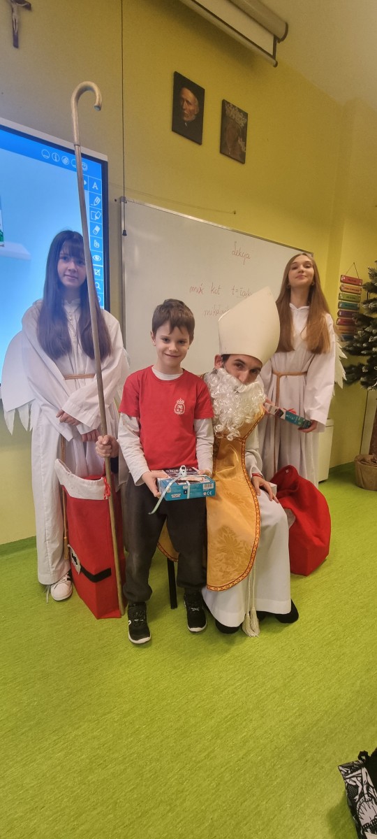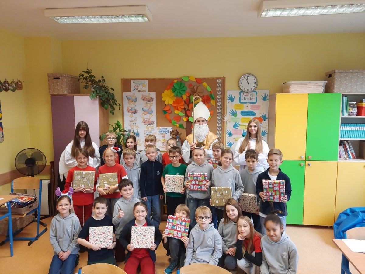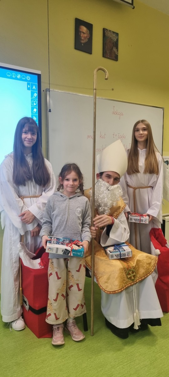 Gdy Mikołaj wszedł do klas, zrobiło się naprawdę wesoło i magicznie. Każde dziecko otrzymało piękny prezent, który wywołał na twarzach uczniów szerokie uśmiechy. Nikt nie dostał rózgi – wszyscy okazali się wyjątkowo grzeczni w tym roku. Wizyta Mikołaja sprawiła wszystkim wiele radości :)