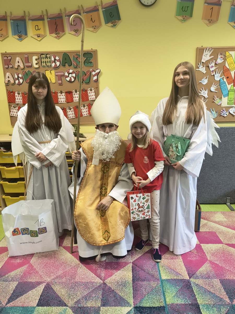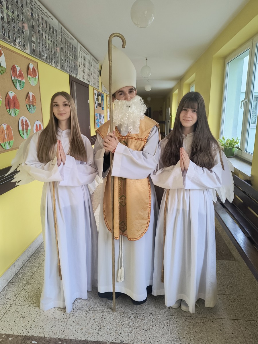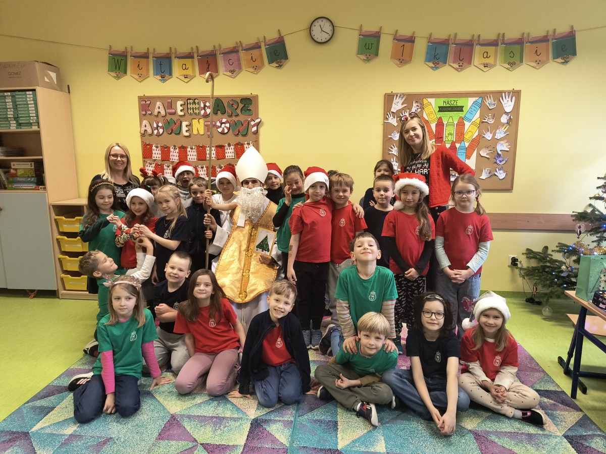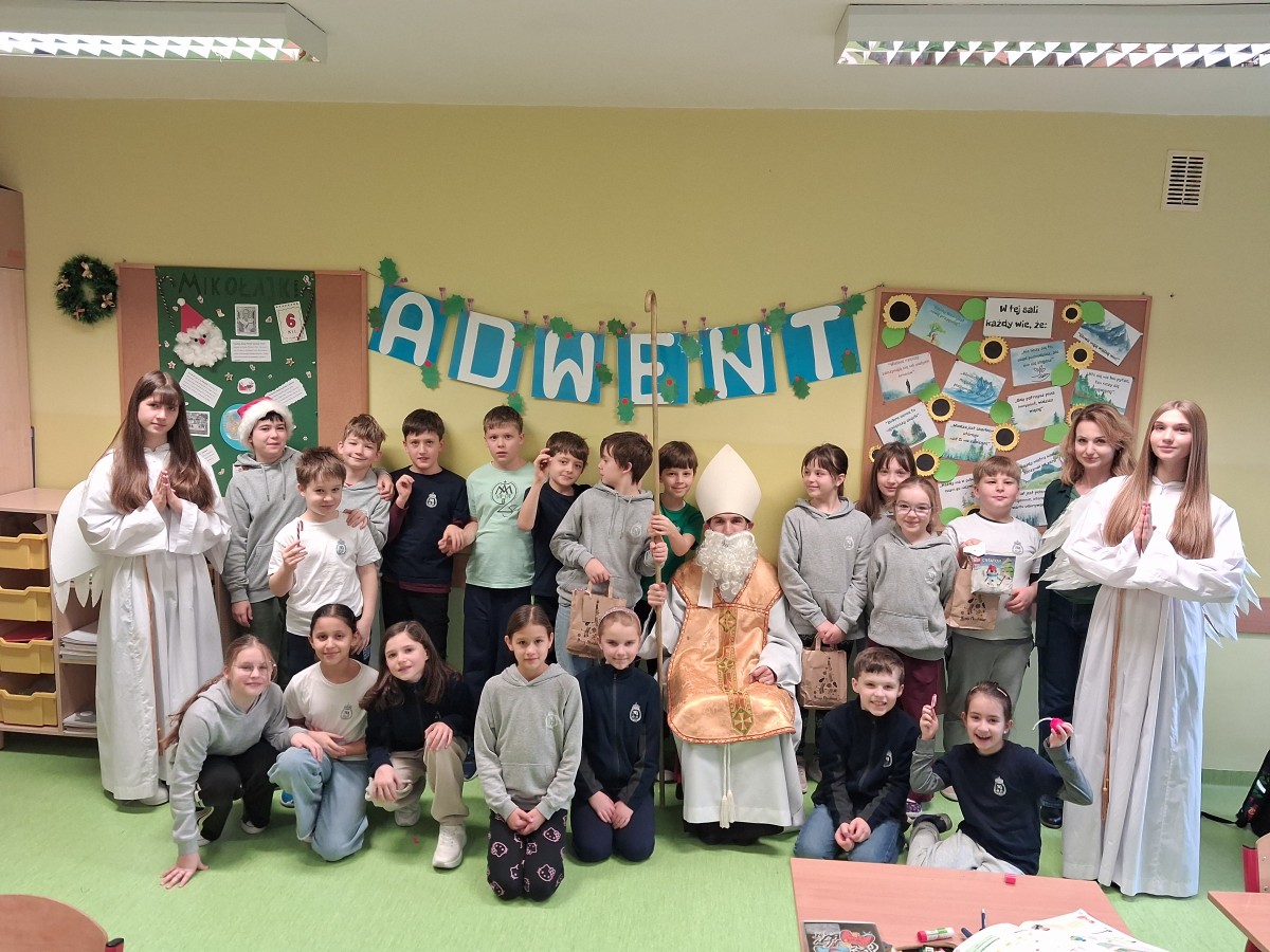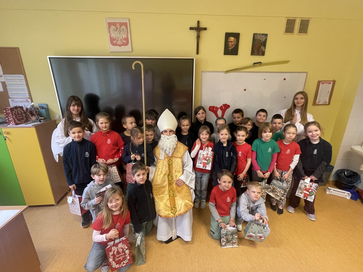 W poniedziałek naszą szkołę odwiedził długo wyczekiwany gość- Mikołaj. Już od rana wśród uczniów panowało ogromne poruszenie, a szczególnie najmłodsi z niecierpliwością wypatrywali jego nadejście.