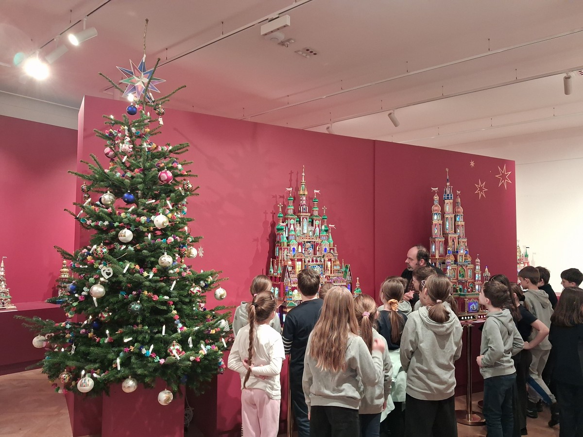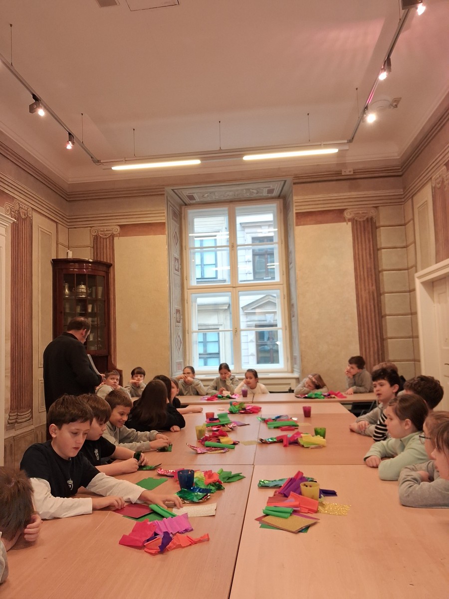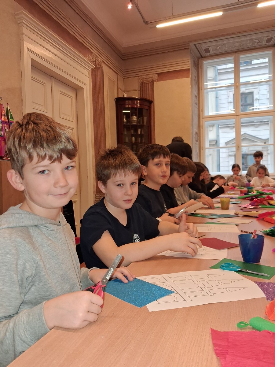 Przewodnik opowiedział im o tradycji tworzenia szopek, która w Krakowie sięga XIX wieku. Uczniowie dowiedzieli się, że dawniej szopki wykonywali rzemieślnicy i murarze zimą, kiedy brakowało pracy, oraz że każda z nich musi przedstawiać charakterystyczne elementy krakowskiej architektury, takie jak wieże Kościoła Mariackiego. Podczas zwiedzania dzieci mogły z bliska obejrzeć zarówno niewielkie, delikatne szopki, jak i imponujące konstrukcje z ruchomymi figurkami. Z zainteresowaniem słuchały opowieści o materiałach, z których powstają te niezwykłe dzieła – kolorowej folii, tekturze, drewnie czy nawet szkle – oraz o pracy twórców, którzy nierzadko poświęcają wiele miesięcy, by ich szopka była gotowa na konkurs. Wycieczka okazała się nie tylko okazją do poznania krakowskiej tradycji, ale także inspiracją do własnych świątecznych działań plastycznych.