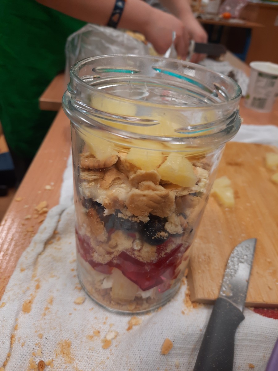 Praca rozpoczęła się od przypomnienia zasad higieny – uczniowie zadbali o czystość rąk oraz swoich stanowisk pracy. Następnie przystąpili do tworzenia wielowarstwowych sałatek według własnego pomysłu.