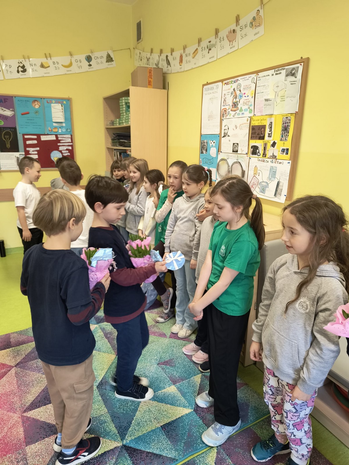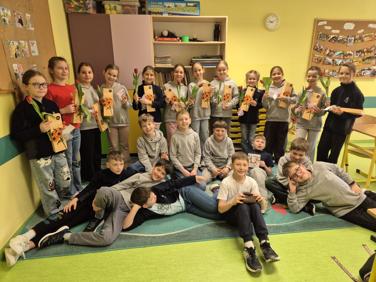 Zarówno młodsze, jak i starsze uczennice otrzymały piękne upominki – kwiaty, słodkości oraz drobne prezenty, które sprawiły im wiele radości i były miłym gestem pamięci. W niektórych klasach przygotowano także kartki z życzeniami, a nawet krótkie wystąpienia czy wspólne klasowe poczęstunki. Przez cały tydzień w klasach panowała ciepła i przyjazna atmosfera. Nie brakowało uśmiechów, miłych słów oraz wspólnych zdjęć upamiętniających te chwile. Był to czas pełen życzliwości, uprzejmości i wzajemnego szacunku, który pokazał, jak ważne są drobne gesty i pamięć o innych.